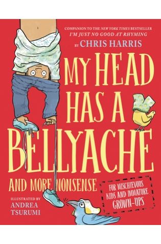 14.) My Head Has a Bellyache: And More Nonsense for Mischievous Kids and Immature Grown-Ups written by Chris Harris, illustrated by Andrea Tsurumi